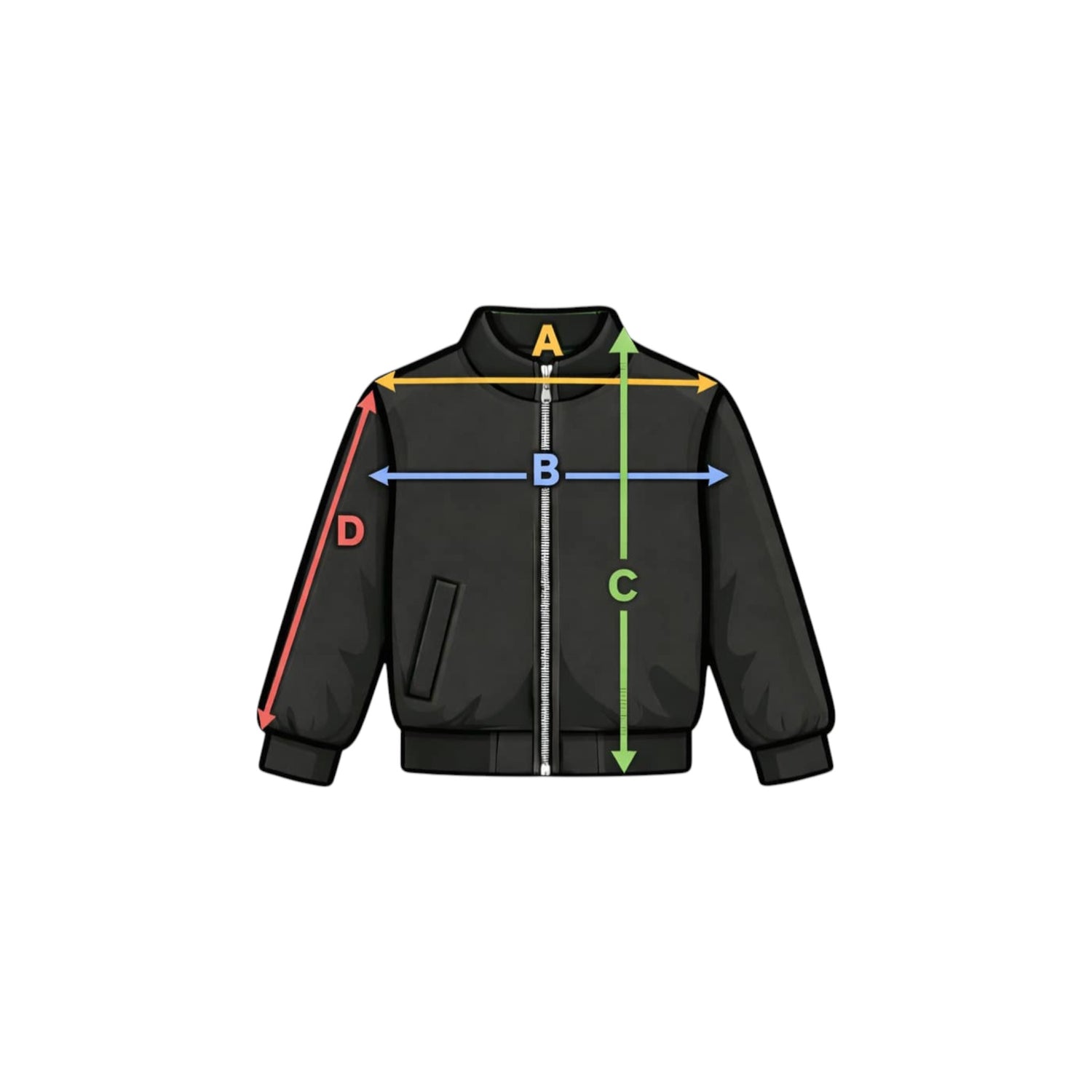 Die Jacke wird glatt und flach liegend gemessen, ohne sie zu dehnen.