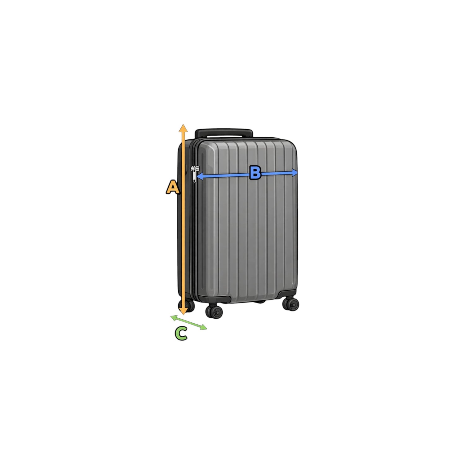 Der Koffer wird im geschlossenen Zustand aufrecht an den äußersten Punkten gemessen.