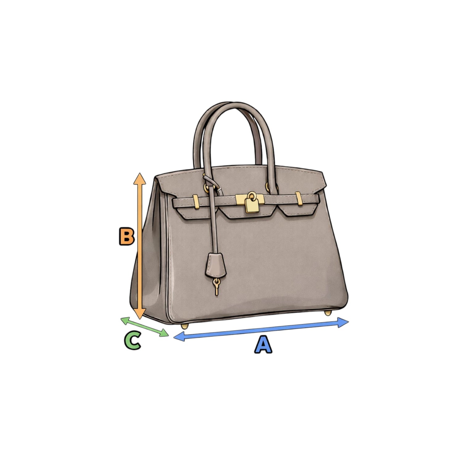 • (B) Höhe: Von der Unterkante bis zur Oberkante der Tasche