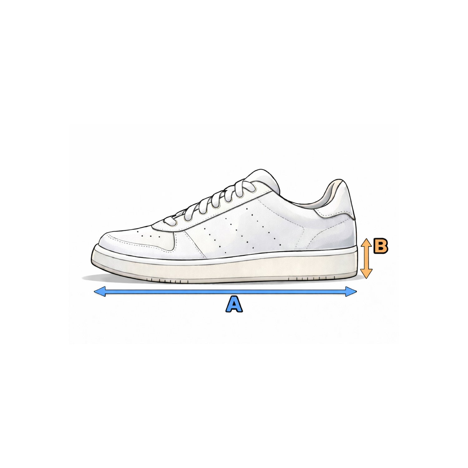 • (B) Sohlen- / Absatzhöhe: Von der Unterkante des Absatzes bis zur Fersenauflage
